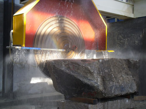 本机横梁采用钢制构造件, 强度高可制成大跨度梁而不断裂。整机重量重,切割平稳、下刀量大、产量高。 横梁切割行走导轨采用高精度线性轨道,机身升降结构采用大直径四导柱液压升降。同时采用专有技术: 立柱及边梁,在切割时有液压锁紧装置;确保切割时整体机身不晃动(选配)。综合以上几项特点该机在加工荒料时,有切割平稳、下刀量深、能耗低;石板材平整度高等优点, 该设备特别适用于大批量石板材加工及高价值大板加工等。